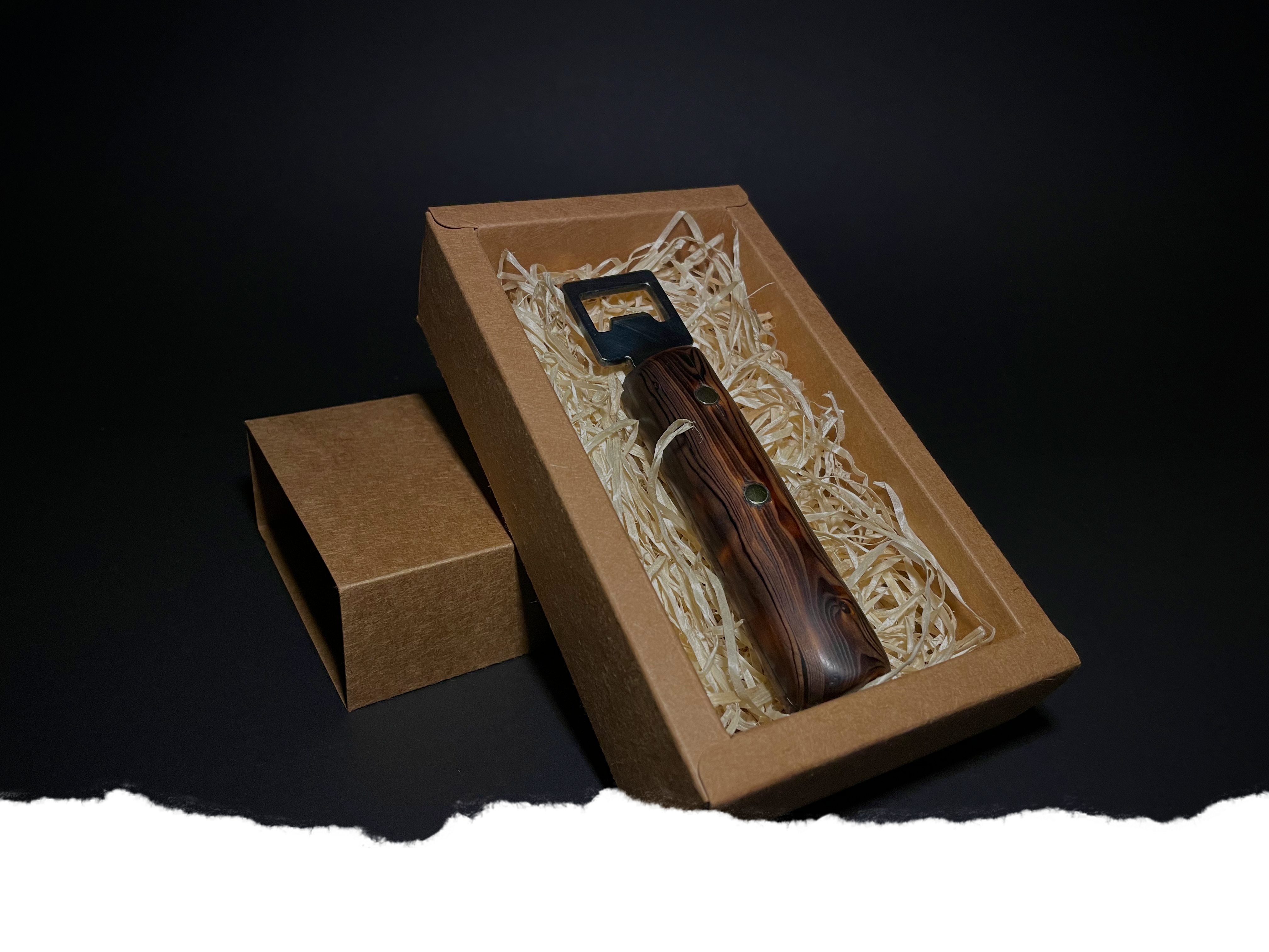 Das Ergebnis ist ein hochwertiger Flaschenöffner, der nicht nur funktional ist, sondern auch ästhetisch ansprechend wirkt. Die Kombination aus Handwerkskunst und Liebe zum Detail zeigt sich in jedem einzelnen Exemplar.